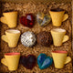 Ēdamas krūzītes: 2 x baltā šokolāde, 2 x tumšā šokolāde, 2 x zemeņu šokolāde.